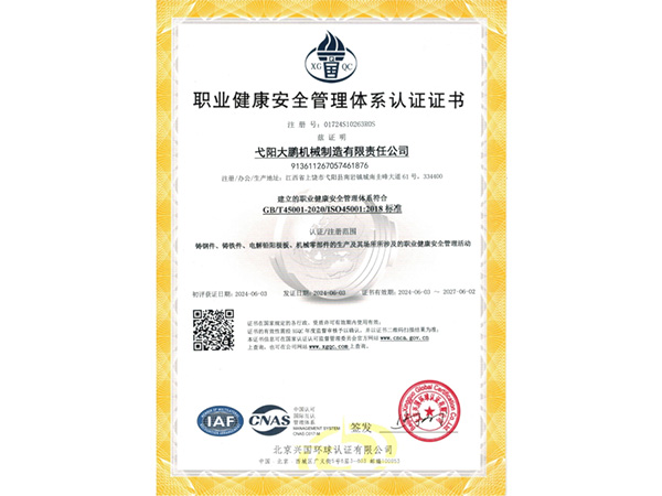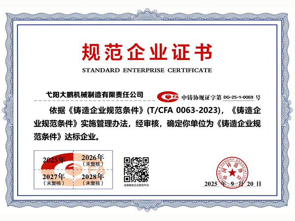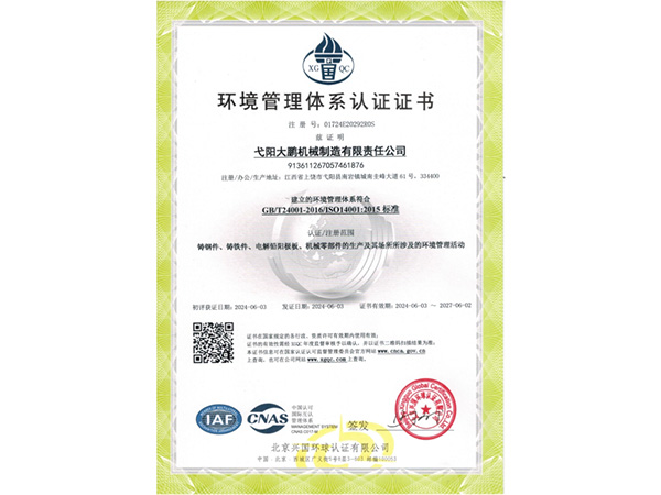 公司順利通過質(zhì)量管理體系認證、環(huán)境體系認證、職業(yè)健康安全管理體系認證、環(huán)評。2015年5月獲國家工信委頒發(fā)的《鑄造企業(yè)準(zhǔn)入條件》;2019年做了安全現(xiàn)狀評價;2020年取得了排污許可證。
